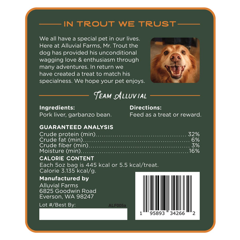 At Alluvial Farms, Mr. Trout the dog has been a loyal companion through every adventure. Inspired by his spirit, Alluvial Farms created a treat that’s as special as he is—nutritious, delicious, and made with care.