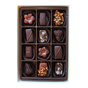 - Enjoy a delightful chocolate box assortment of: Dark Chocolate Lavender Infused Truffles, Hazelnut Gianduja Flowers, Marshmallow Caramel Bars, Earl Gray Truffles, Chocolate Dipped English Toffee and 72% Cacao Truffles.