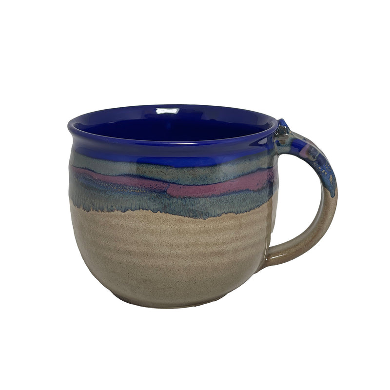 Enjoy your latte a little longer with Clay In Motion's handmade Cobalt Canyon Latte Mug. Crafted with care and passion, this stoneware mug boasts a sturdy and durable design with timeless appeal—perfect for your favorite caffeinated or decaffeinated creamy creations. The rustic charm and smooth glaze finish add warmth and elegance to any kitchen and its generous size lets you savor every sip.