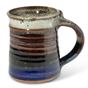 This sturdy, straight walled, handmade stoneware Mug by Clear Creek Pottery holds 12 oz. and comes in the mysterious Storm Glaze - a beautiful mix of blue, black and rich browns. It is 4.5" high by 3.5" wide, beautifully crafted and a solid mug with a thumb rest. Functional pottery is microwave, oven and dishwasher safe. All glazes are lead free and safe for food. Holds approximately 12 fl oz. Weighs approximately 1 lb 1 oz.