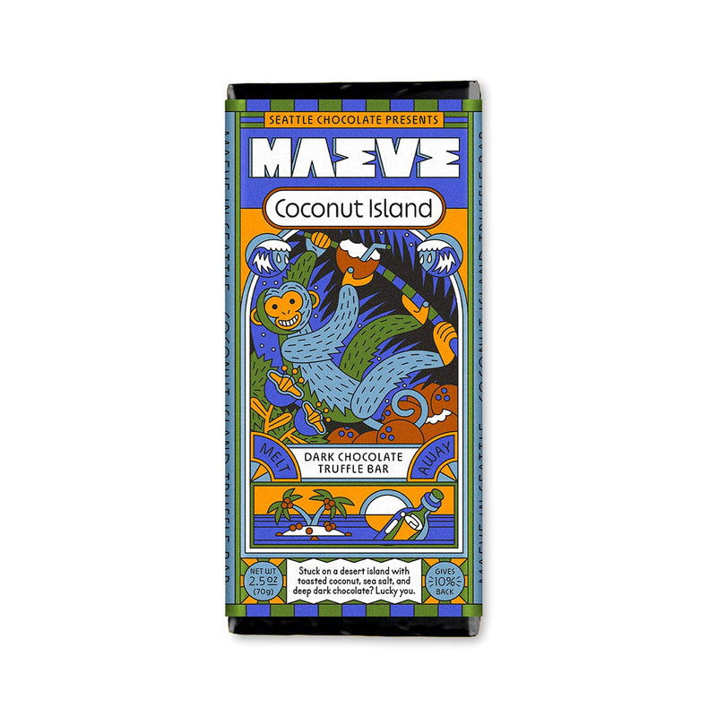 Maeve's signature Coconut Island dark chocolate truffle bar is loaded with tropical coconut, balanced with sea salt and enrobed in their unique meltaway dark chocolate. What’ s that? All of the sudden you DON’T want to call a rescue plane?