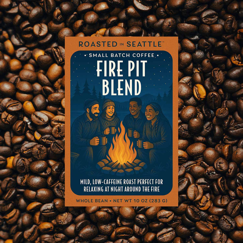 Our partners at Caffé Appassionato have roasted a proprietary blend of beans from farms in Guatemala, Honduras, Columbia, & Brazil — 75% decaf & 25% regular — to achieve the balanced character and low caffeine profile of Fire Pit Blend.