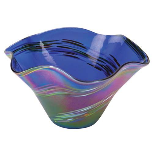 Hand Blown Glass Mini Wave Bowl Blue Rainbow Twist