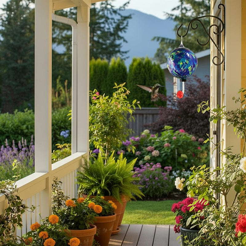 Brighten your garden and attract hummingbirds with this handblown glass hummingbird feeder from Glass Eye Studio. Designed as both functional garden art and a wildlife-friendly feeder, it adds vibrant color to your outdoor space while making backyard birding easy and enjoyable.