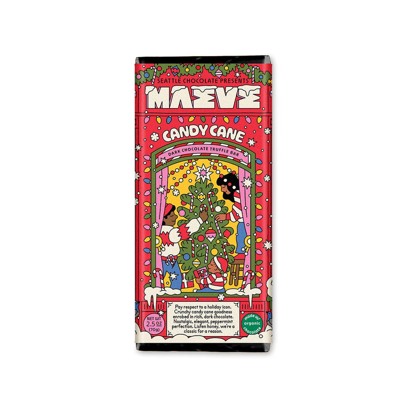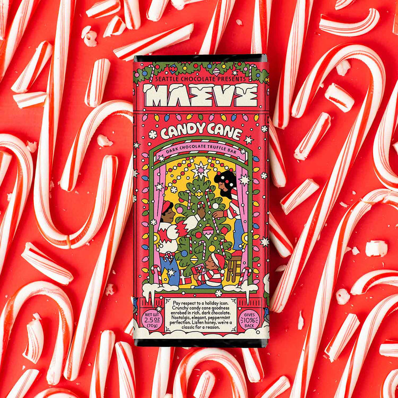 A delicious twist on the classic holiday candy - every bit as delicious but without any of the bad stuff. Featuring peppermint and crunchy candy cane pieces smothered in rich, dark chocolate.