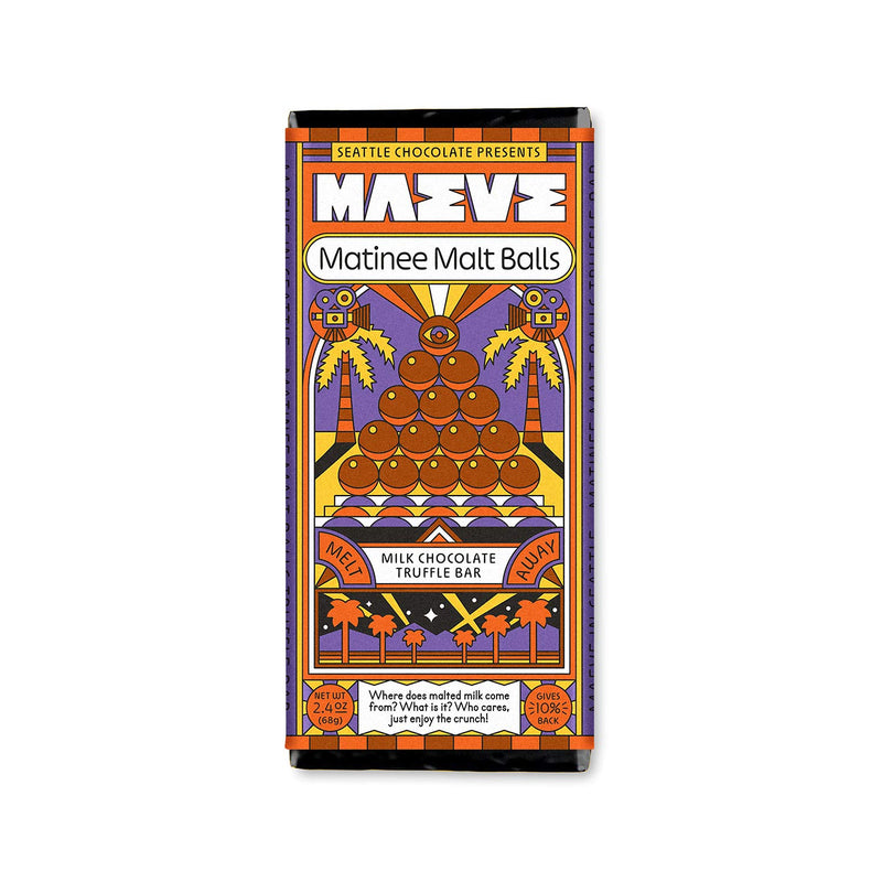 Finally! A chocolate bar worthy of Blanche Brock’s cinematic achievements - Matinee Malt Balls from Maeve. The reviews are in: Hollywood's hottest director is calling it a truffle tour de force! A meltaway masterpiece! He likes it! He really likes it!