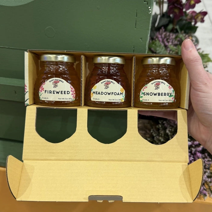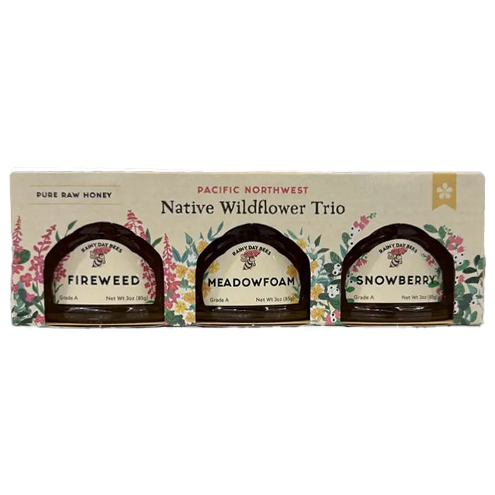 All across Seattle and Shoreline's charming neighborhoods, Rainy Day Bees places their hives in the backyards of hosted homes. From early spring to the height of summer, the honeybees roam gardens, woodlands, and wild spaces, gathering nectar from native flowers that define the region’s beauty. At season's end it's time to harvest the treasure. Each variety in this boxed set captures the flavor of a fleeting season and a specific bloom. Beautifully illustrated and complete with tasting notes, it’s a gift as delightful to explore as it is to enjoy.
