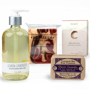 Treat someone special (or yourself) to a curated collection of Washington-made artisan soaps. From the bright zest of Lemon Lavender to the creamy sweetness of Almond Coco Vanilla, each soap delivers rich lather, calming botanicals, and everyday indulgence — naturally.