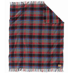 Pure virgin wool throw is softly napped and the perfect size to curl up with on the sofa or toss in the car. Each one is still woven in their American mill in Washougal, Washington and comes with a convenient leather carrier. Called steamer rugs during the early 20th century, these blankets were a warm, welcome companion for those who traveled by horse-drawn carriage, train or ship.