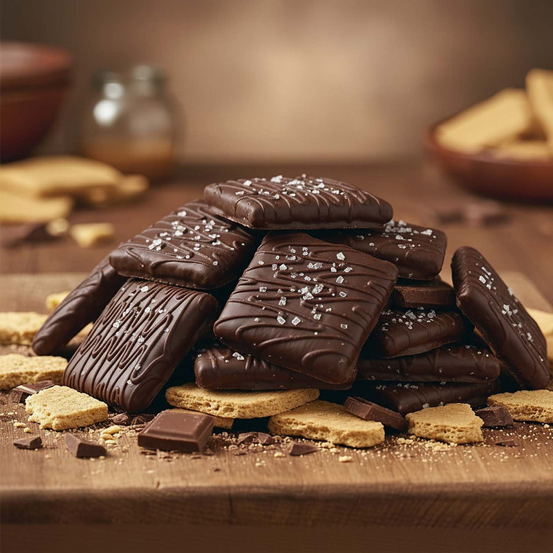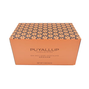 Experience the harmony of sweet, salty, and sophisticated with Puyallup Chocolates' Dark Chocolate Covered Graham Crackers. Each graham is crafted for the best flavor and texture. With each bite you'll taste the satisfying snap of 54% dark chocolate with the crunch of honey graham.