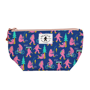 Delightful travel pouch reflecting the Washington state of mind (to locals as well as travelers) by Chalo. This multi-use pouch features a whimsical screen printed illustration of Big Foot's daily activity on the exterior.