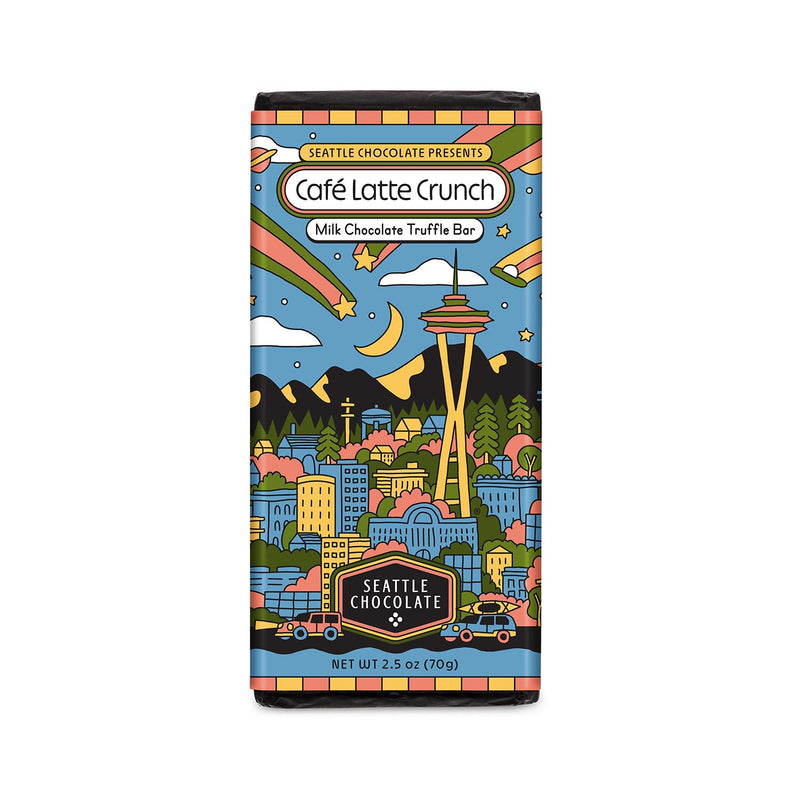 Find a little sweetness in Seattle from the bustling city to the forests that may or may not hide a Sasquatch or two. Creamy milk chocolate truffle bar infused with decaf espresso and crunchy, sparkling demerara sugar.