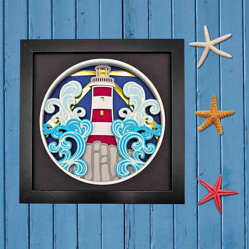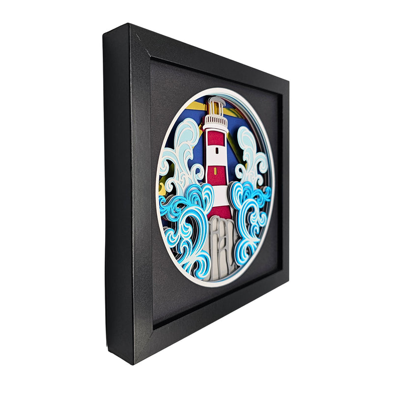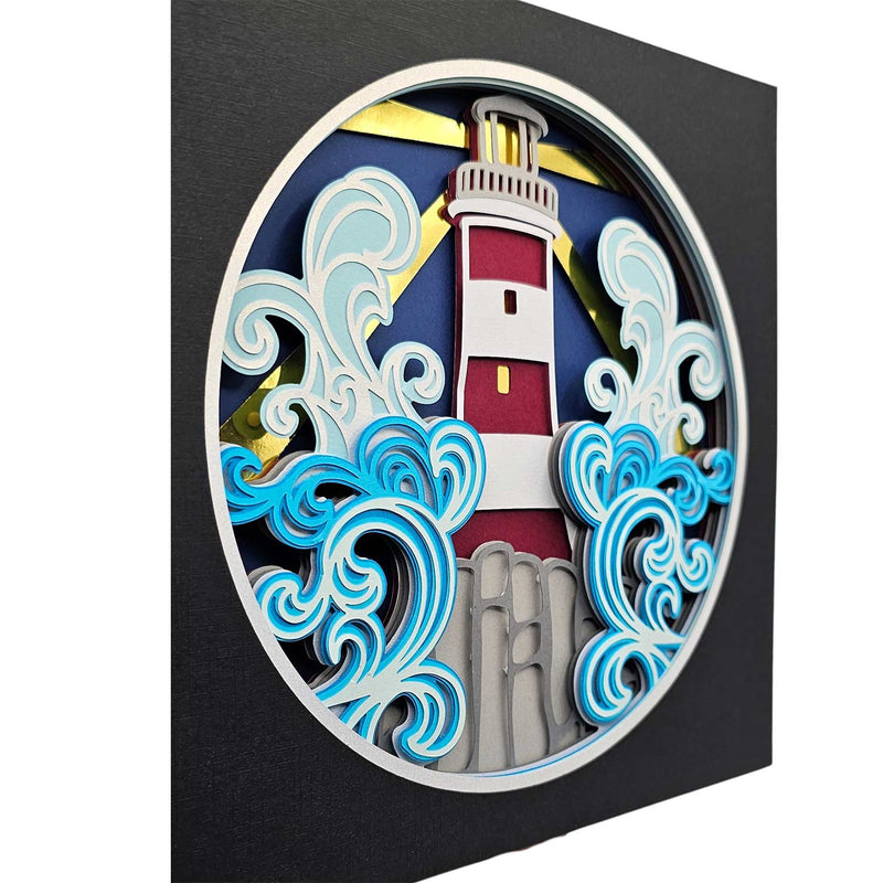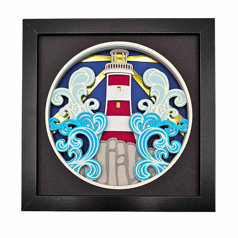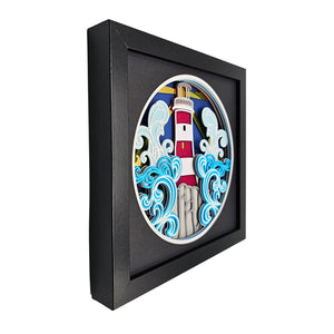 The intricate, multi-layered design adds depth and texture, making it a captivating focal point in any room. Whether you're drawn to the soothing power of the ocean or have a special love for lighthouses, this piece will enhance your décor with its unique beauty and quality craftsmanship.