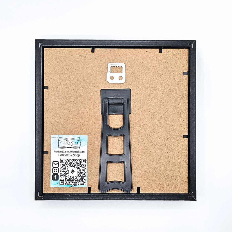 - Framed Size: 8.75"(h) x 8.75"(w) x 1.25"(d)